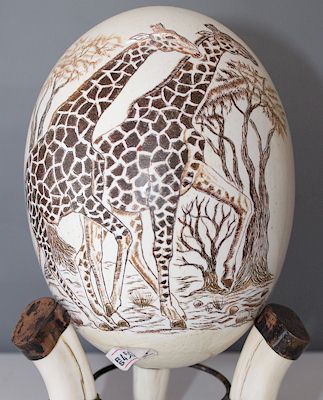 Half-Scrimshaw Ostrich Egg (Egg Only)